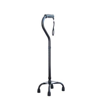 四腳拐杖顧名思義有四支腳,穩定性更強,所以能夠負擔身體較多的體重,幫助走路與前進,而且放手可以直立,不用擔心會掉,長者也就不必彎腰撿拾拐杖,不過因為四腳拐杖體積較大,在上下樓梯時,萬一階梯寬度不夠,就沒有辦法著地,一般是適合因為疾病、手術而不良於行的長者。