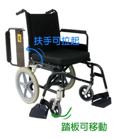 適合手腳比較不靈活,需要別人幫忙才能上下輪椅的使用者。要幫忙的時候,可以將扶手跟踏板旋開或乾脆拆掉,讓輪椅更接近床,減少輪椅的阻擋,讓移位更安全。