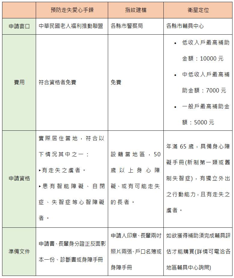 透過教育宣導、配戴預防走失手鍊、協尋通報、 後續比對、追蹤服務及社會福利諮詢等整體措施,並結合警政、社政、醫療衛生單位、傳播媒體的力量,有效協助家屬尋找不慎走失的老人。