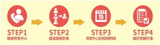 以上新修的法令內容及擴大增加的服務項目,確實提供了需要長照服務的家庭一定程度的緩解出口,然而是誰可以來申請這些服務呢?符合前述申請需求,需要此些服務的受照顧者大部分已經無法自行去完成申請動作,誰能協助他們?基本上,「任何人」都可以透過長照服務專線為需要受照顧者申請長照服務。因政策考量到有些照顧需求者可能身邊已無相關照顧者可協助申請,故不限制申請者需與申請受照顧者間需有任何血緣或法律關係!申請完後會再由照管中心出動專員至家中衡量評估,聯絡照管中心想要申請長照服務,先與各縣市政府的總窗口→「照顧管理中心」聯繫。(臺北市電話為02-2537-1099;其他縣市則為1966,申請流程步驟如下: