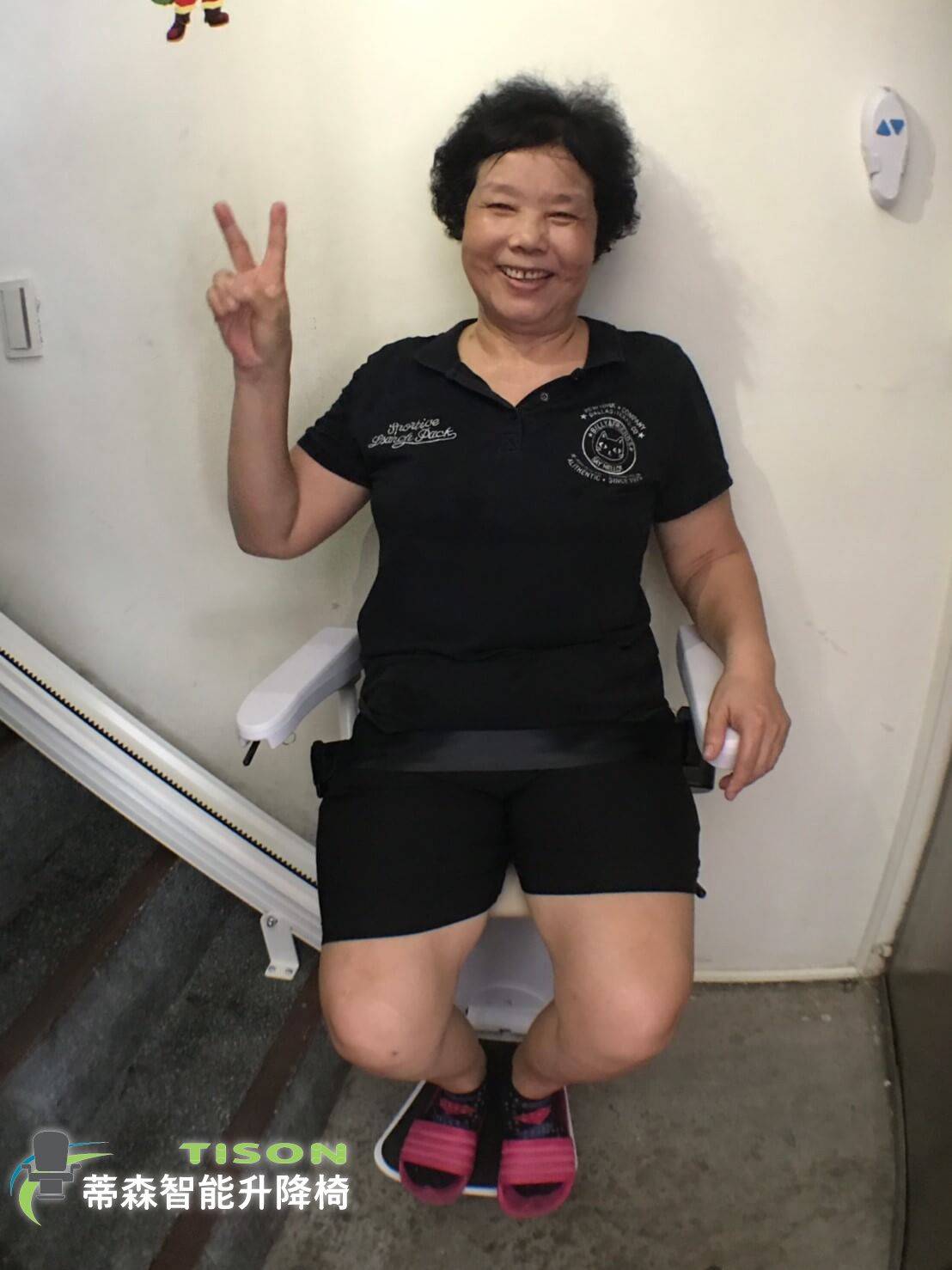 她知道市面上有電梯與樓梯升降椅二種可選擇,但想到電梯太占用到家裡空間了,而且怕哪天地震承受不住整間房子不就毀了嗎?再加上之前有朋友安裝樓梯升降椅,她覺得是個不錯的選項,於是決定選擇樓梯升降椅來給自己當輔具工具。
