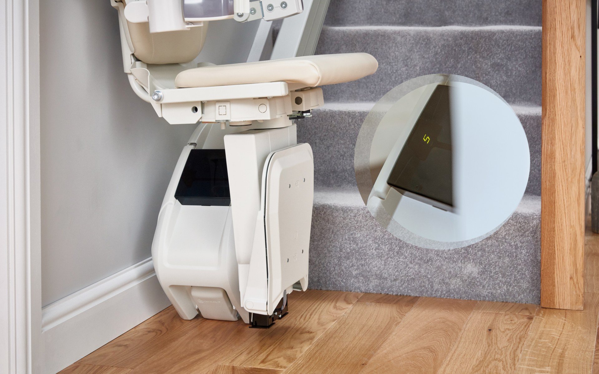 座椅靠近即自動伸出滑軌,乘坐上樓即自動收回。