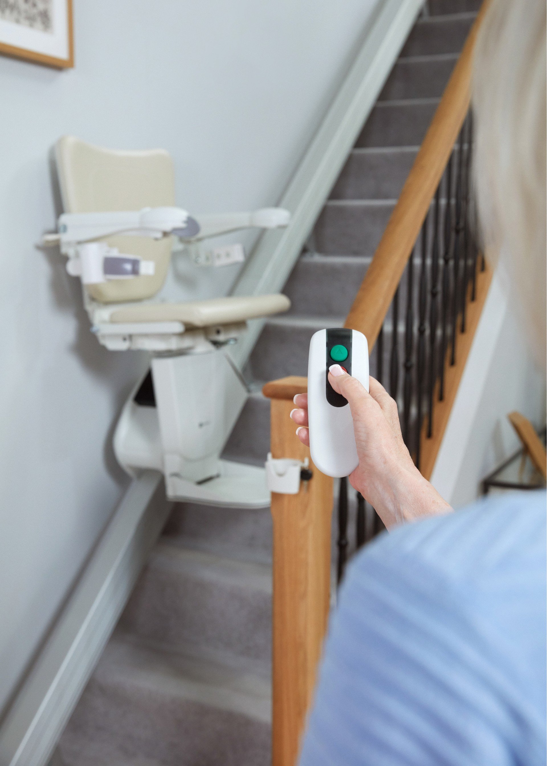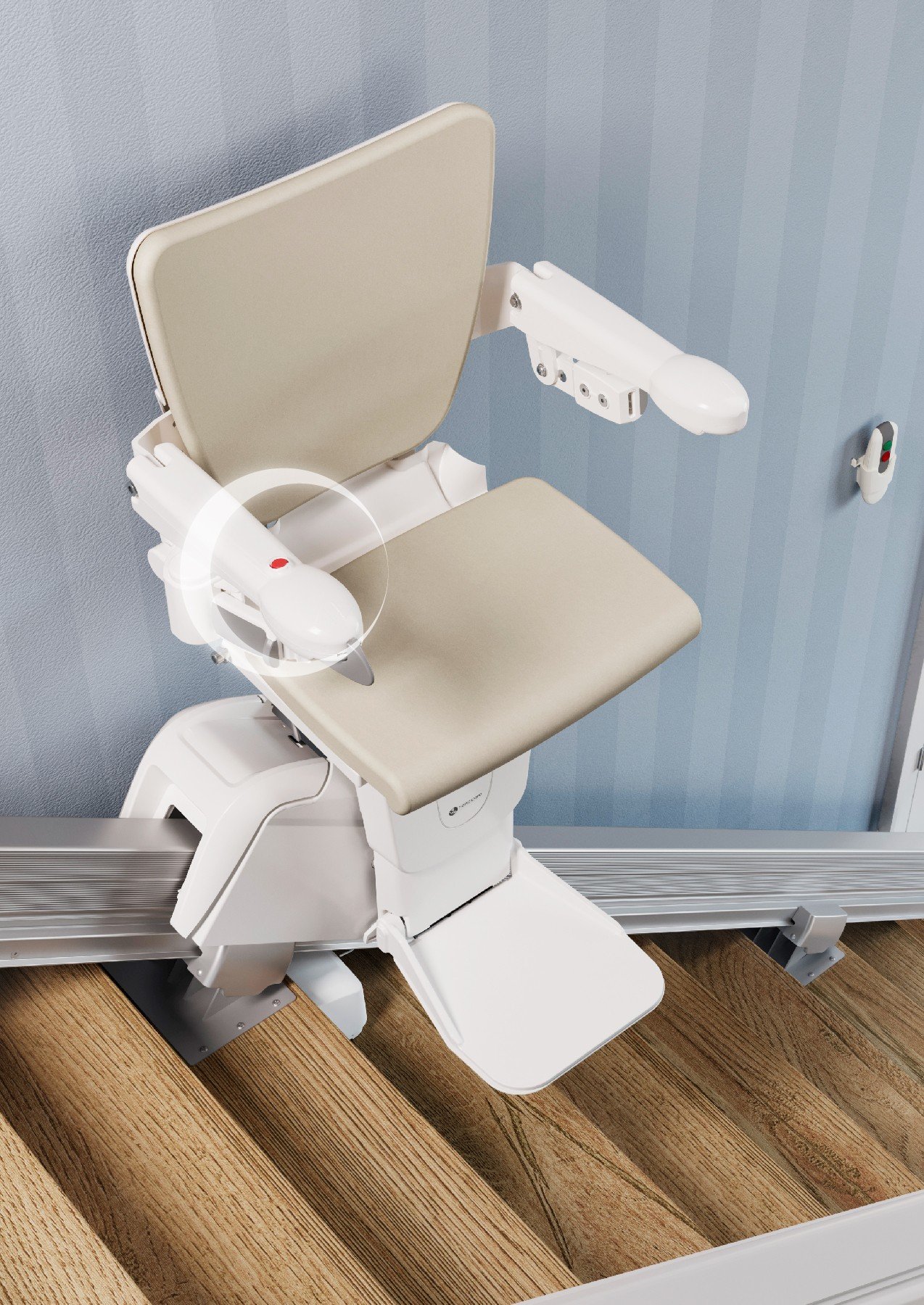 座椅靠近即自動伸出滑軌,乘坐上樓即自動收回,樓梯口不再卡卡。